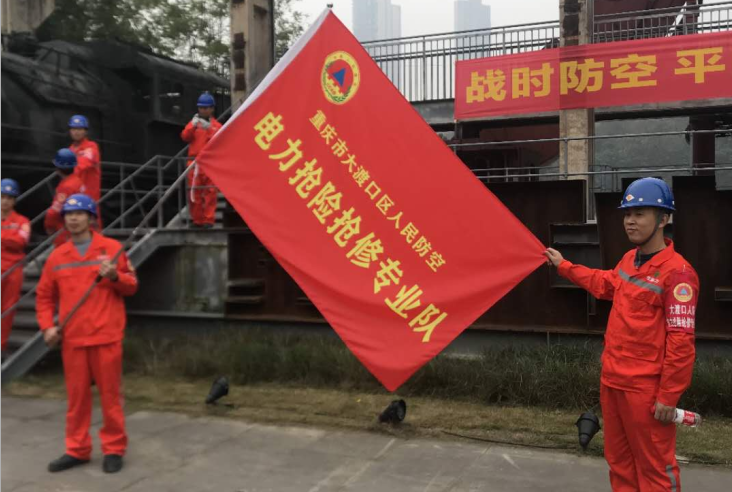 重慶大渡口區人民防空辦公室組織的大渡口區2019年人民防空專業(yè)隊伍 防空襲綜合演練:現在進入現場的是我區電力搶險搶修專業(yè)隊,這支專業(yè)隊由重慶寶翼電力設備維護有限公司組建。戰(zhàn)時該專業(yè)隊主要負責城市電力應急供應及電力中斷恢復任務,本次演練主要負責電力系統受損時的恢復工作。